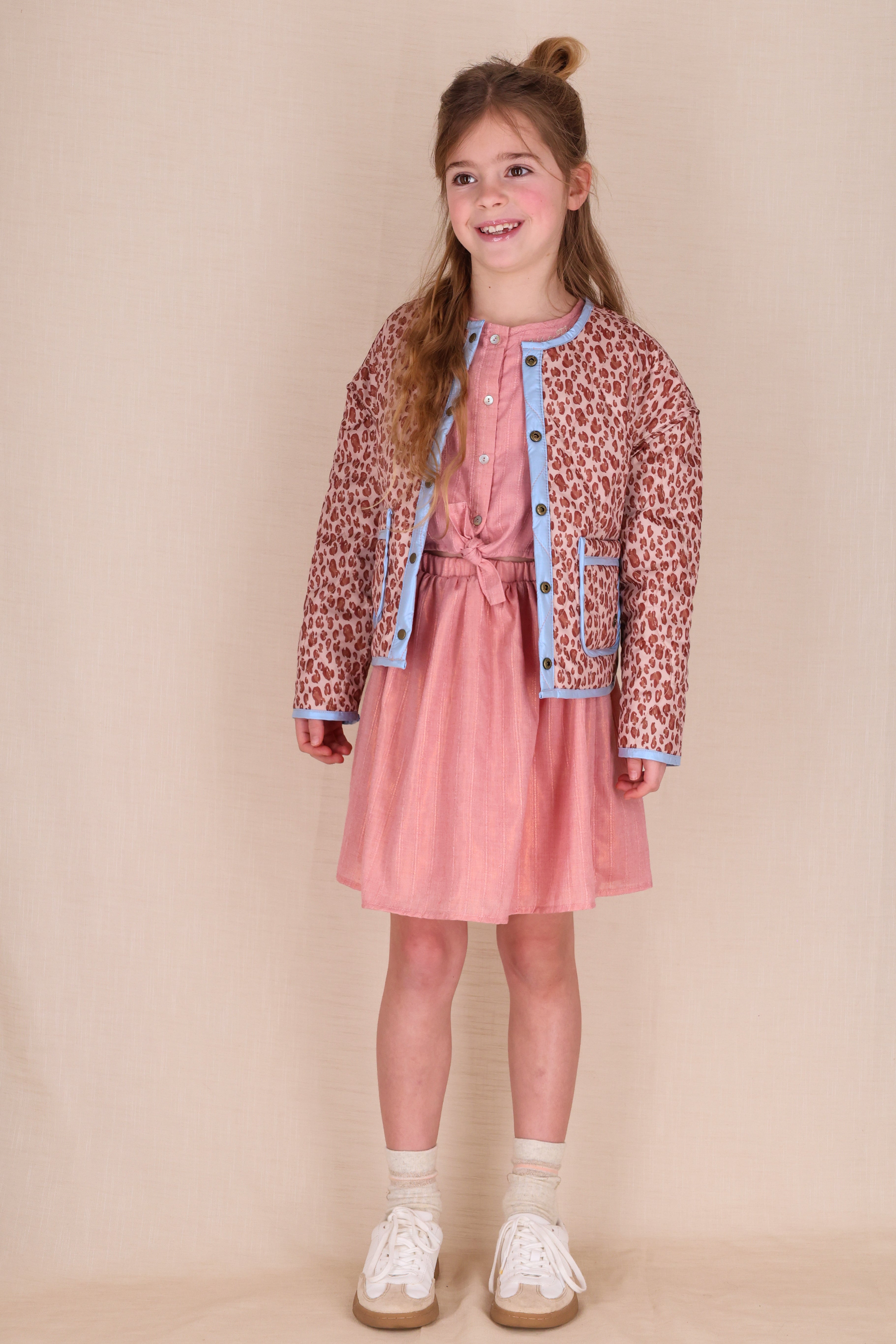 Dit trendy Livia Jacket is perfect voor vrolijke dagen! Het is een omkeerbaar gewatteerd jasje, met aan de ene kant een coole lichte denim en aan de andere kant een leuke panterprint. Dit jasje is ideaal voor elke outfit en zorgt ervoor dat je altijd in de spotlight staat!• Makkelijk in verschillende maten te dragen!