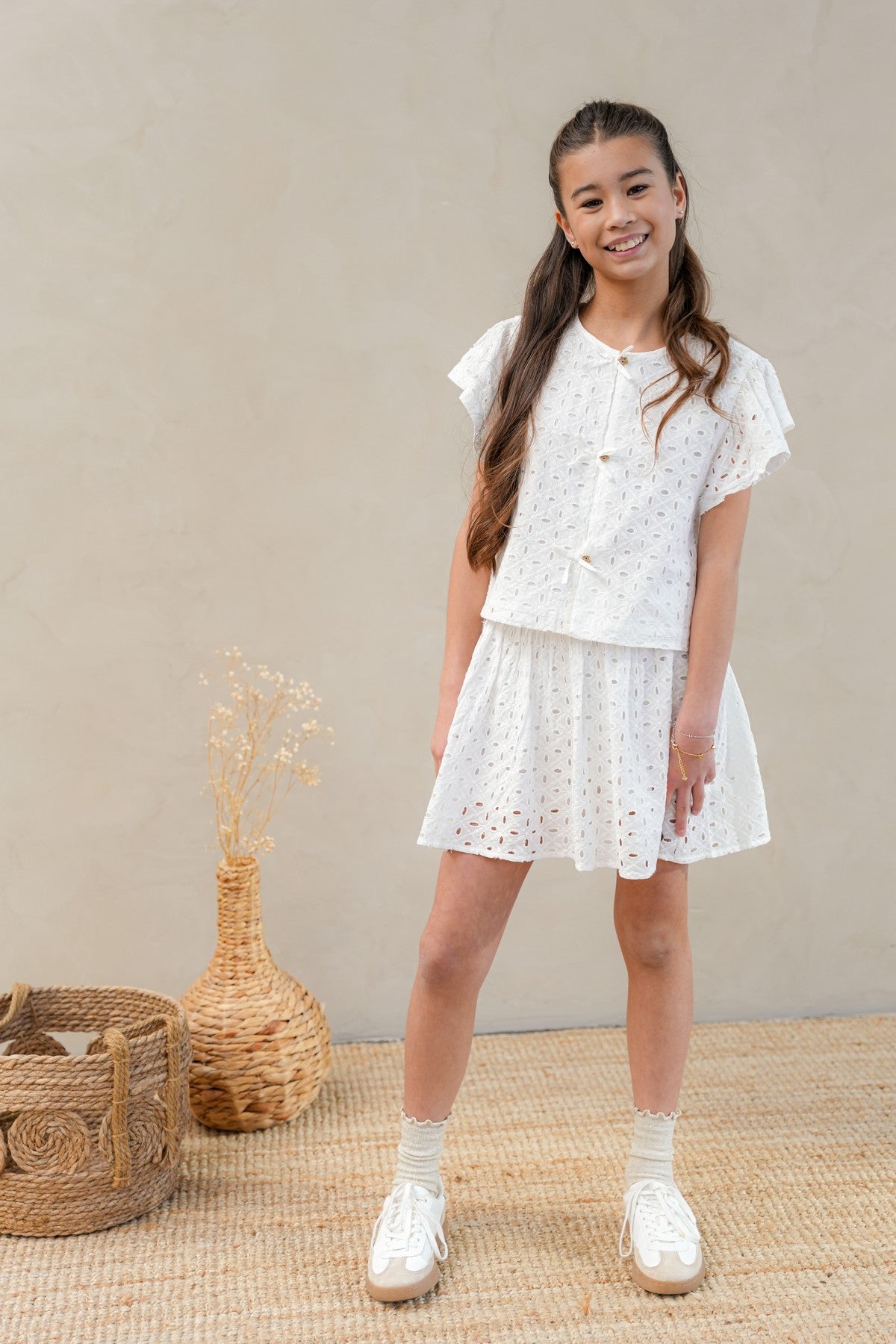 Maak elke outfit compleet met deze trendy Silvanna rok! Gemaakt van 100% katoen, is deze rok een must-have voor elke stoere meid. Hij is ideaal voor casual dagen en feestelijke gelegenheden, en perfect te combineren met de matching top Charlotte.• Verkrijgbaar in verschillende maten voor een perfecte fit!