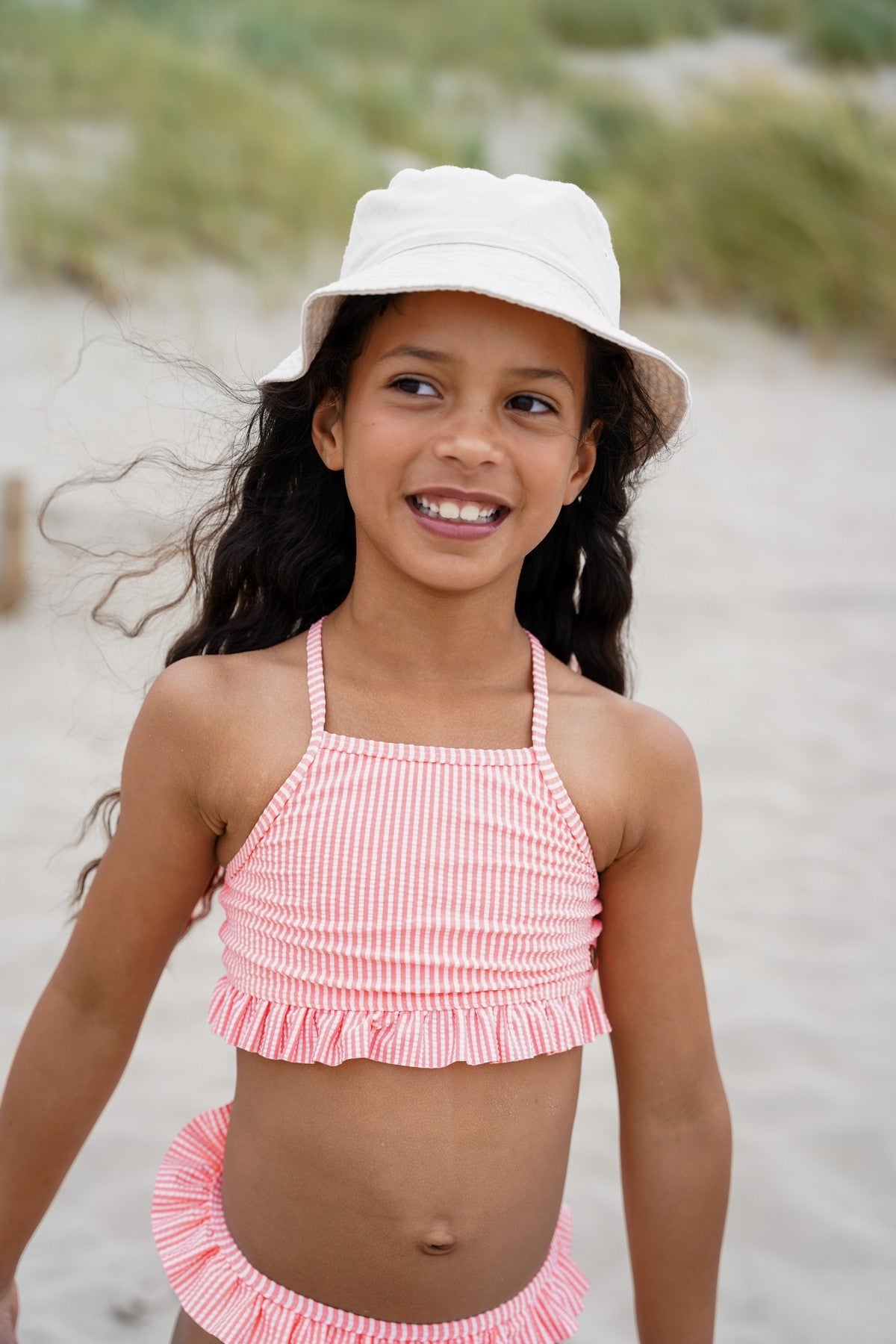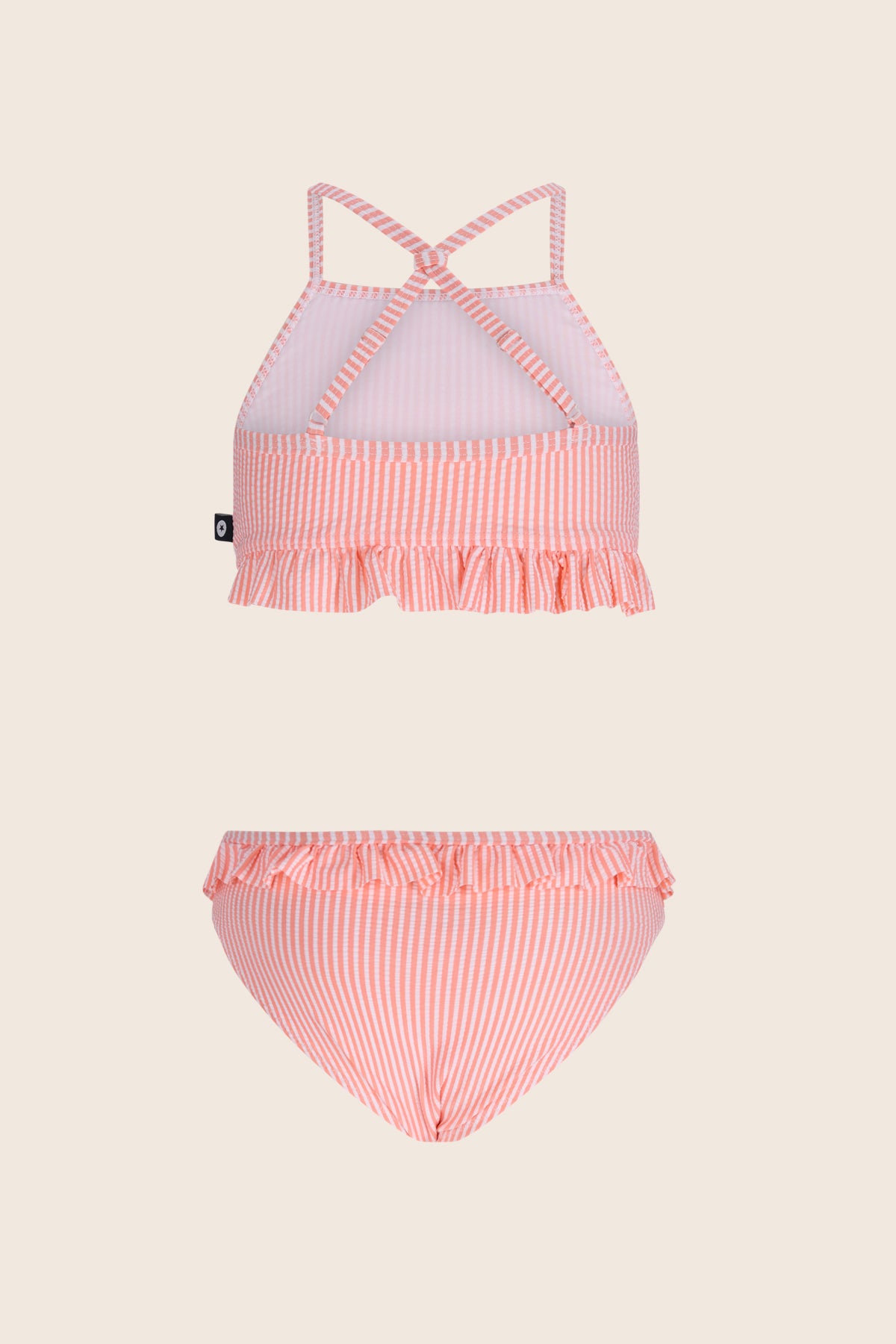 Maak je klaar voor de zonnige dagen met deze trendy Like Flo Taylor bikini! Deze bikini is perfect voor elke dame die een stijlvolle en comfortabele uitstraling wil. De bikini heeft een unieke cross-back en verstelbare bandjes voor de ideale pasvorm. Het vrolijke oranje/witte streepje met structuur maakt deze bikini een opvallende keuze voor het strand of zwembad.• Perfect voor warme dagen aan het water!