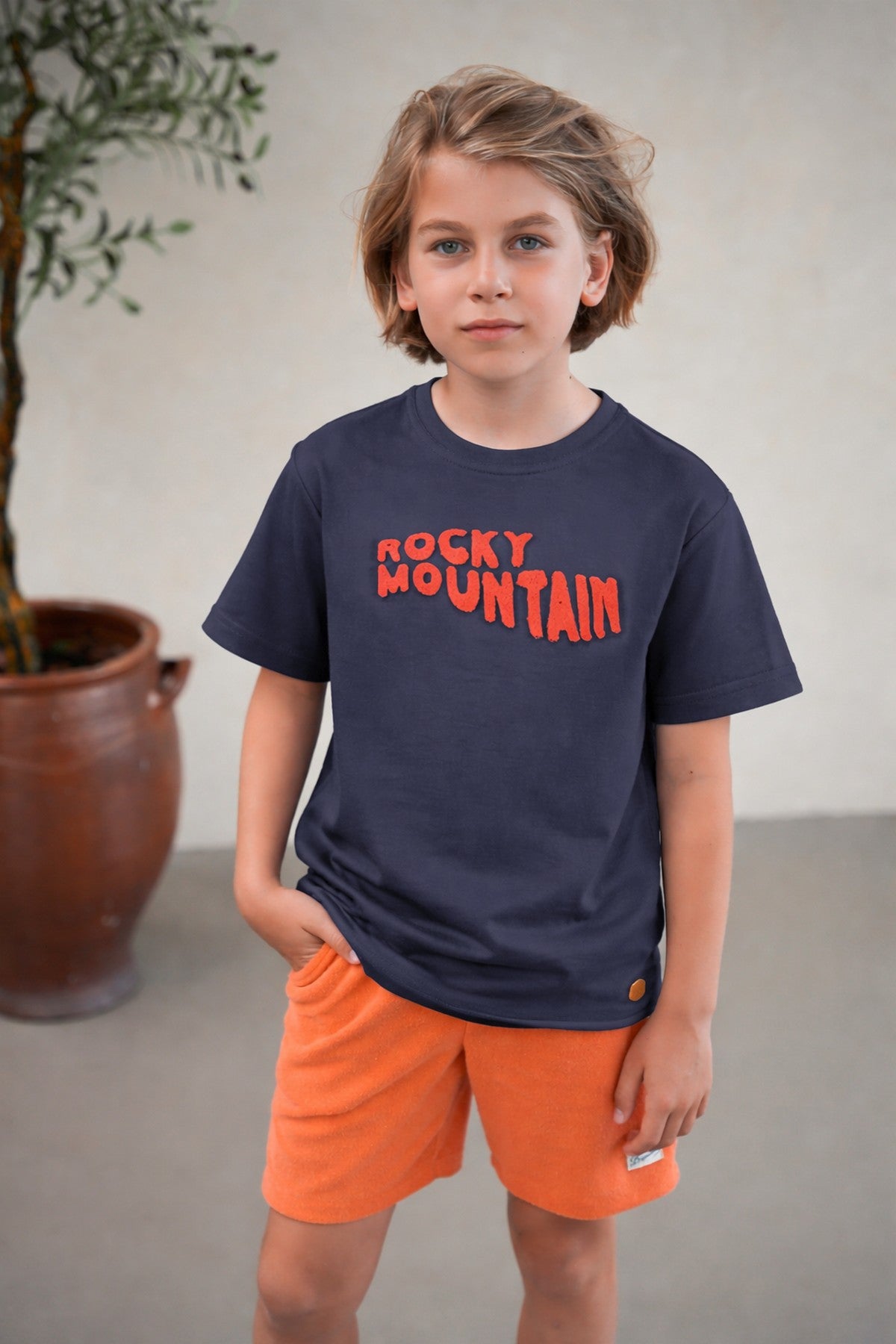 De Like Flo Eagle top in navy is een must-have voor jongens! Dit coole t-shirt, gemaakt van 100% katoen, heeft een hippe 'rocky mountain' tekst en is perfect voor alledaagse outfits. Combineer het met Broek Frankys, Feddes of jeans Florian voor een complete look. Dit navy shirt biedt zowel stijl als comfort en laat je kleine avonturier stralen tijdens elke gelegenheid! Scan de QR-code om de reis van het kledingstuk te ontdekken!