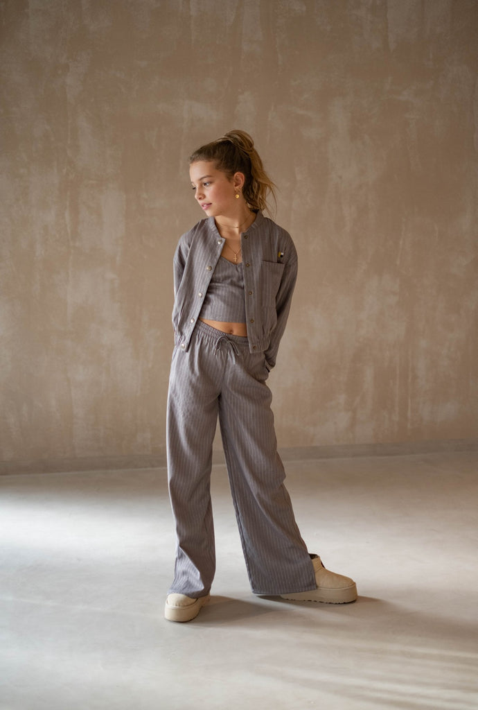 Ontdek de Like Flo Chilly blouse in grijs! Deze trendy blouse heeft een unieke off-shoulder stijl en is gemaakt van een heerlijk zachte stof met glitteraccenten. Een perfecte aanvulling op de garderobe van elke tiener! Combineer het met de broek Filly en het topje Emille voor een complete en fashionable look. Met zijn comfortabele pasvorm en stijlvolle details, zal dit item zeker een favoriet worden. Scan de QR-code om de reis van het kledingstuk te ontdekken!
