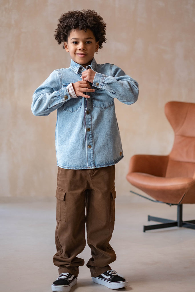 Like Flo Charlies blouse in Blauw is de perfecte denim blouse voor jongens! Deze trendy blouse met knoopsluiting en zakken op de borst laat elke outfit stralen. Gemaakt van comfortabel denim, ideaal voor alledaags gebruik en kan makkelijk gecombineerd worden met Jeans Florian of Broek Feddes. Deze blouse is een must-have voor de stijlvolle jonge avonturier! Scan de QR-code om de reis van het kledingstuk te ontdekken!