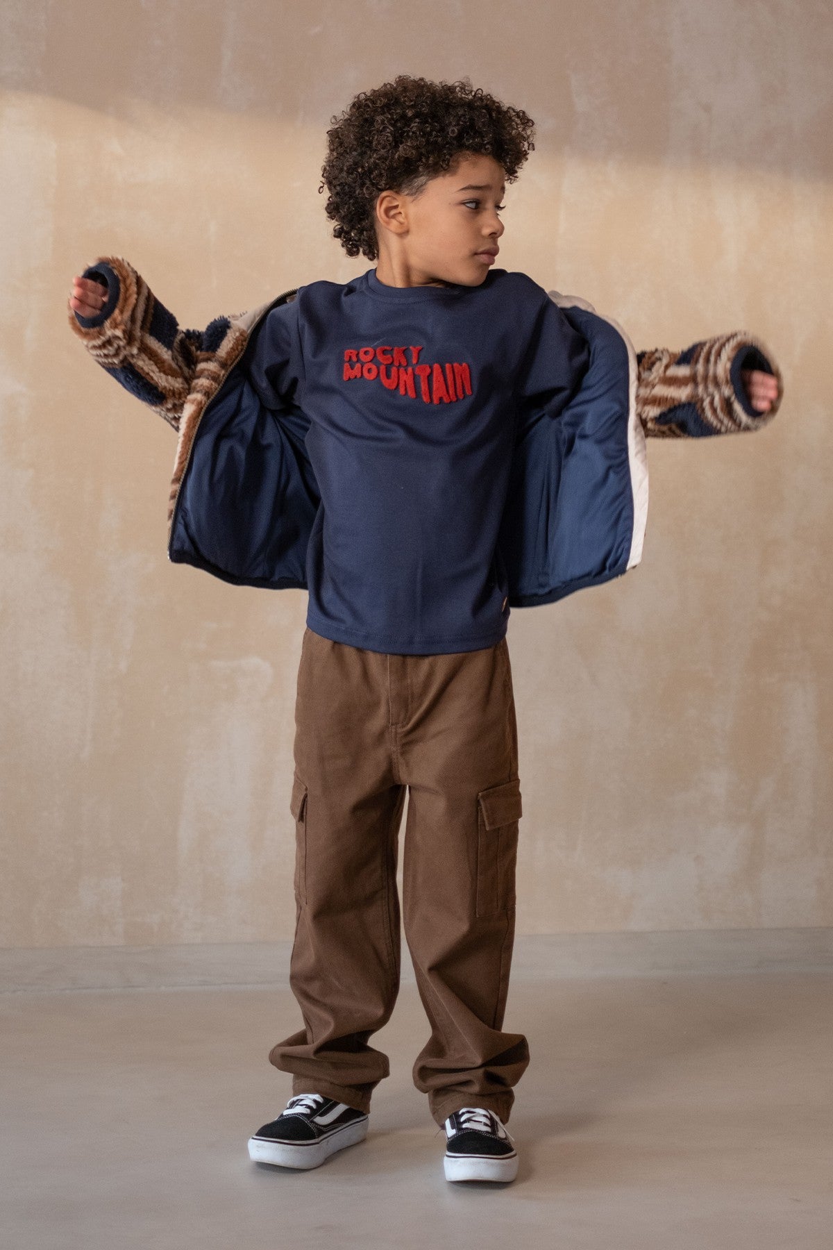 De Like Flo Eagle top in navy is een must-have voor jongens! Dit coole t-shirt, gemaakt van 100% katoen, heeft een hippe 'rocky mountain' tekst en is perfect voor alledaagse outfits. Combineer het met Broek Frankys, Feddes of jeans Florian voor een complete look. Dit navy shirt biedt zowel stijl als comfort en laat je kleine avonturier stralen tijdens elke gelegenheid! Scan de QR-code om de reis van het kledingstuk te ontdekken!