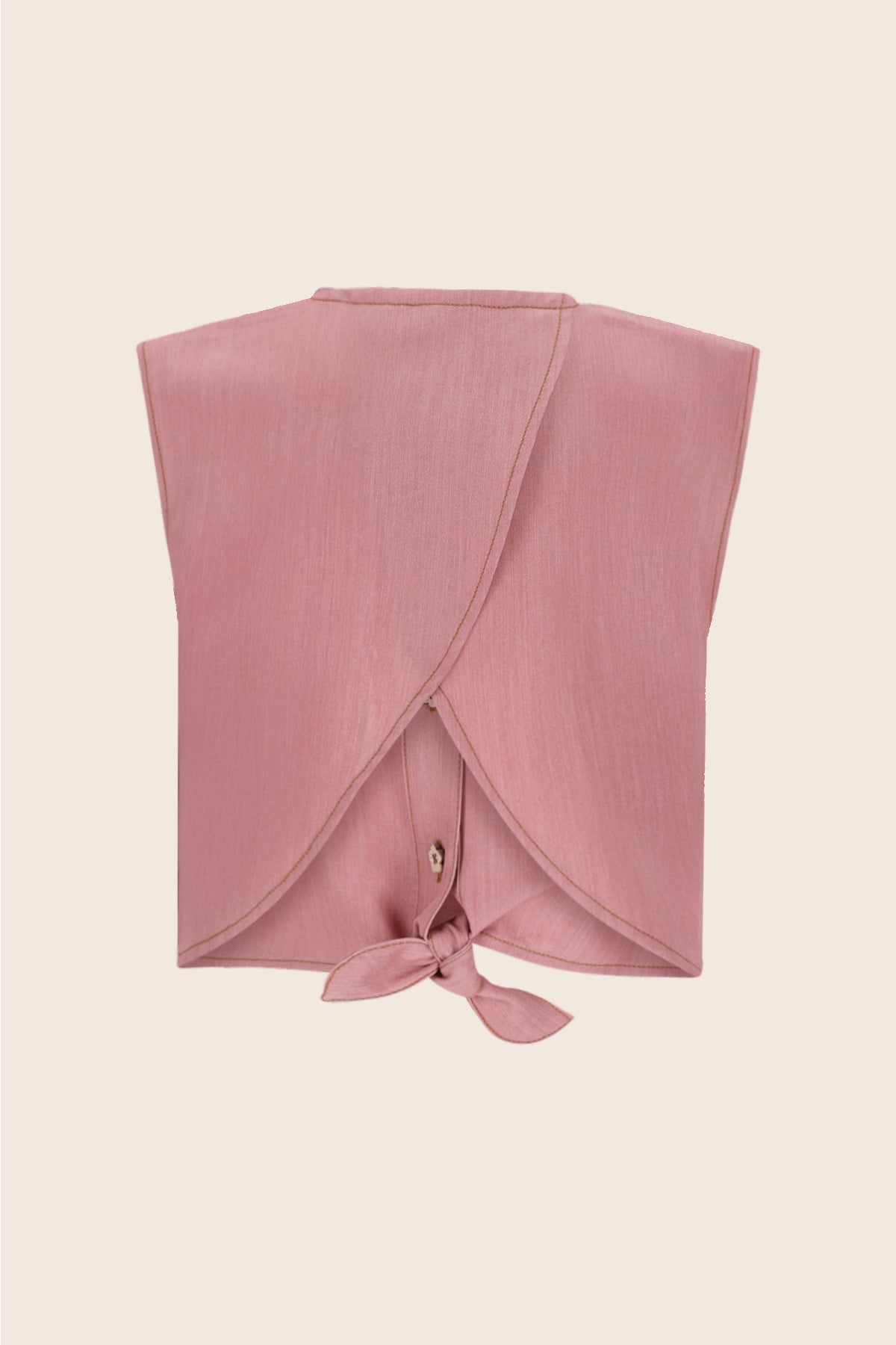 Toon je unieke stijl met de Clara blouse! Deze trendy doorknoopblouse in old pink heeft een stoere fit en bijzondere details zoals gekruiste achterkant en vrolijke bloemetjes knoopjes. Perfect voor meiden die graag opvallen in hun outfit!
