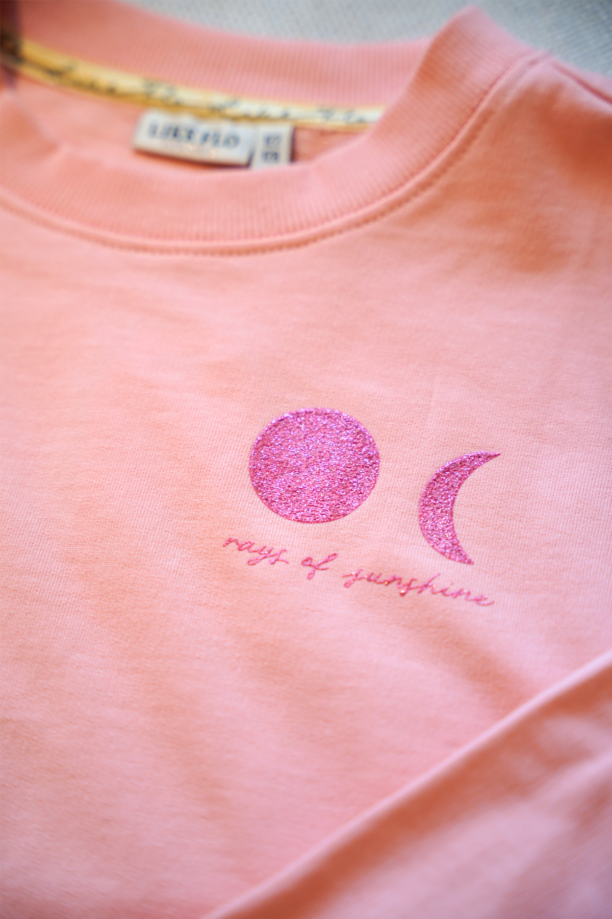 • De bijzondere roze glitterprint van zon/maan maakt hem uniek!