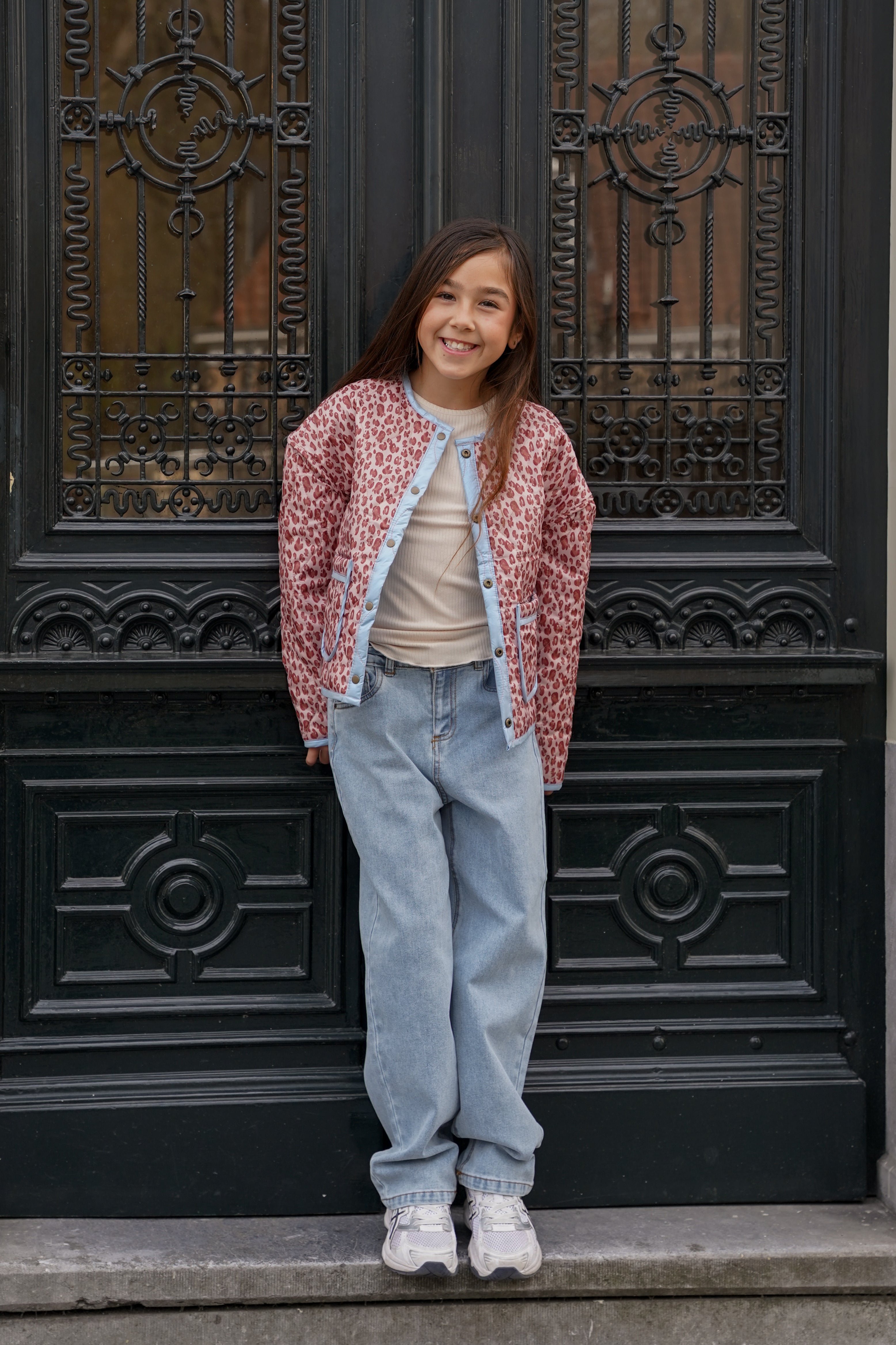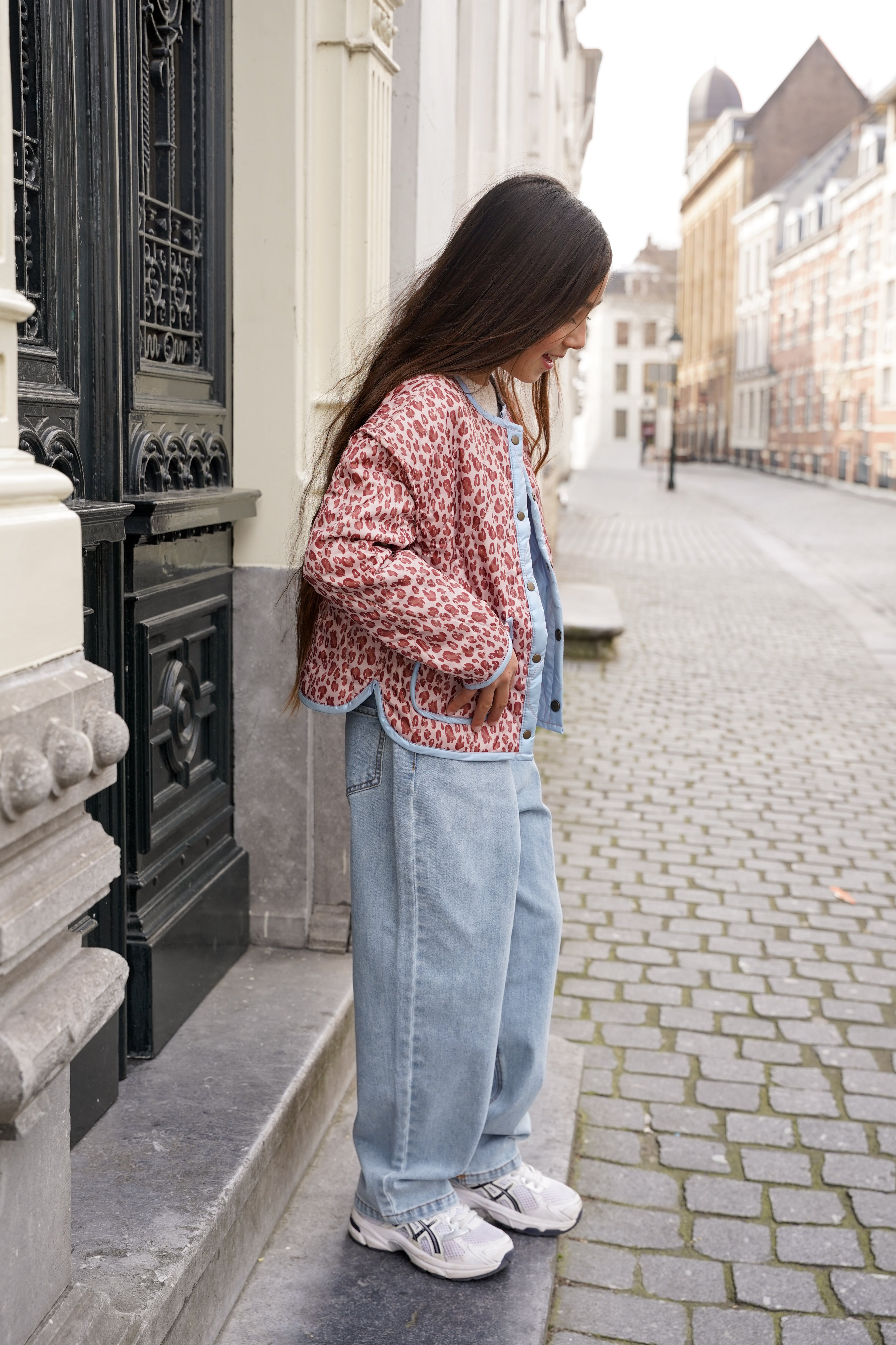 Dit trendy Livia Jacket is perfect voor vrolijke dagen! Het is een omkeerbaar gewatteerd jasje, met aan de ene kant een coole lichte denim en aan de andere kant een leuke panterprint. Dit jasje is ideaal voor elke outfit en zorgt ervoor dat je altijd in de spotlight staat!• Makkelijk in verschillende maten te dragen!
